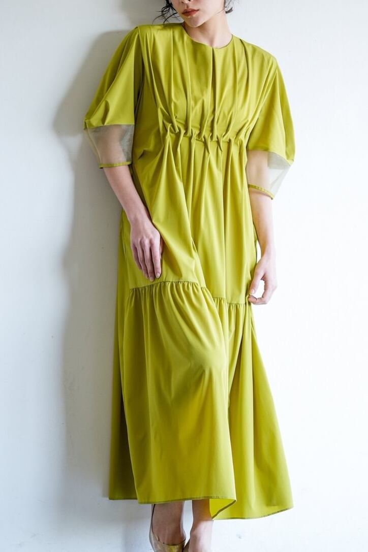 2025AW Lallia Mu【2513330】シアースリーブ切替ワンピース