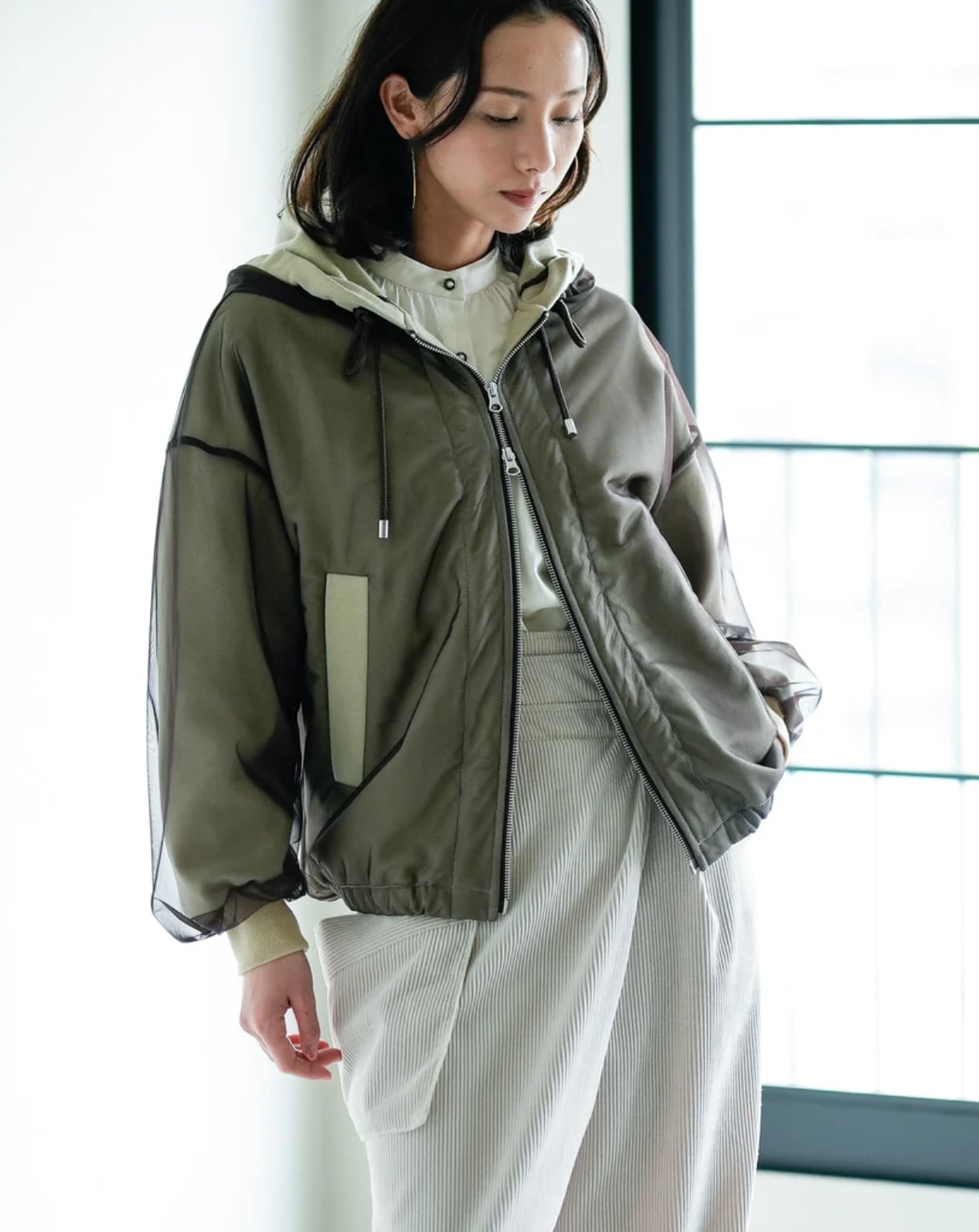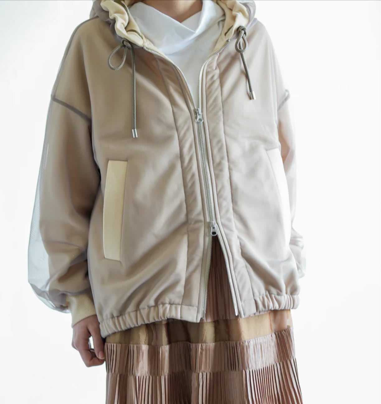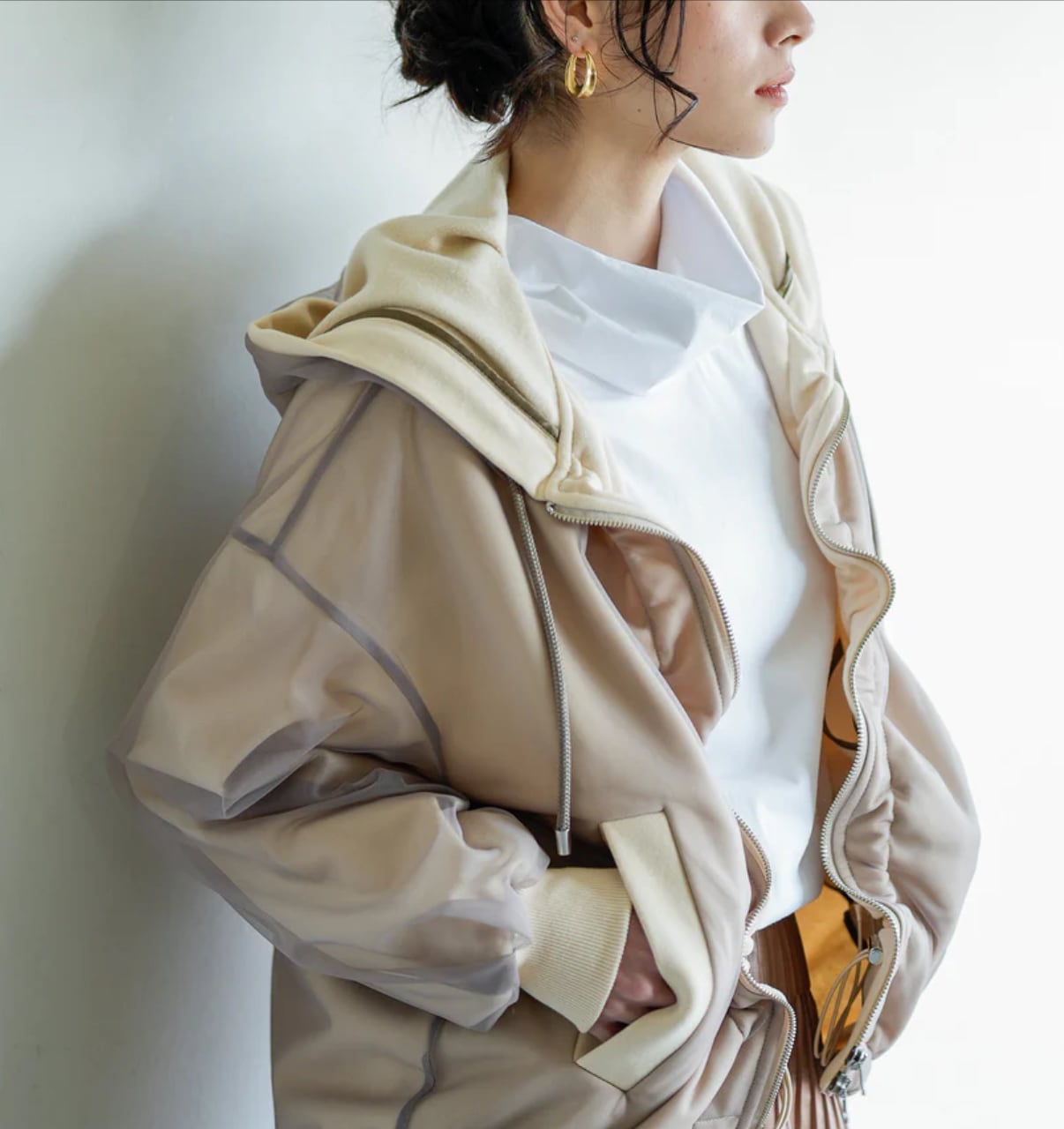 華やかチュールが大人かわいい、着心地も抜群なジップアップパーカー。カジュアルなパーカーというアイテムに繊細なチュールをまとわせることで上品なお洒落アイテムにアップデート。カジュアルとかわいいのバランスが絶妙な一着です。内側はふんわりとした起毛素材で肌あたりも柔らかくあたたかで快適な着心地。長袖でロングシーズン活躍します。フロントはダブルジップファスナー仕様で、着こなしのアレンジ自在。ファスナー横にドローストリングが施されておりギャザーを寄せて楽しむことも可能です。デニムやスカート、ワンピースなど、どんなアイテムとも相性が良く、スタイルの主役になれる羽織アイテムです。